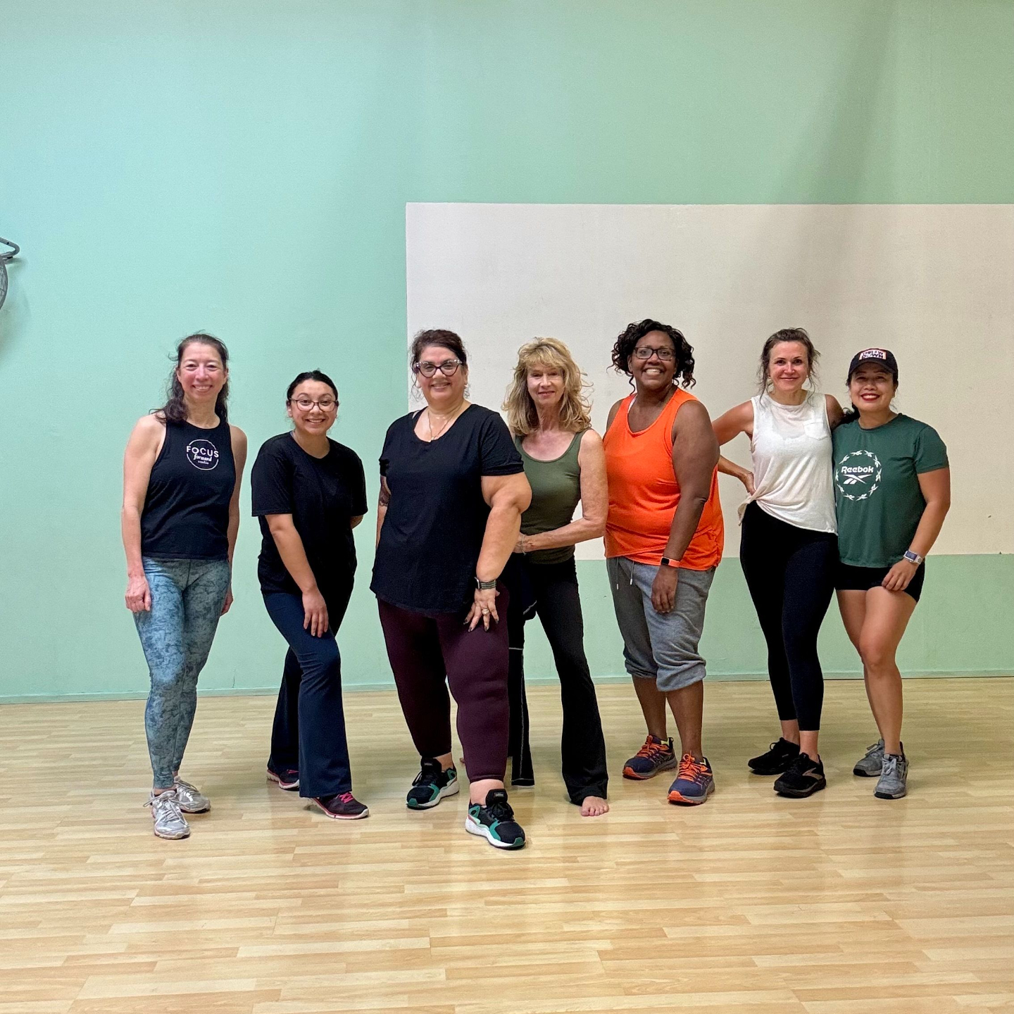 Just your energy, comfy workout clothes, clean grippy sneakers, and water with secure lids. We’ll take care of the rest.